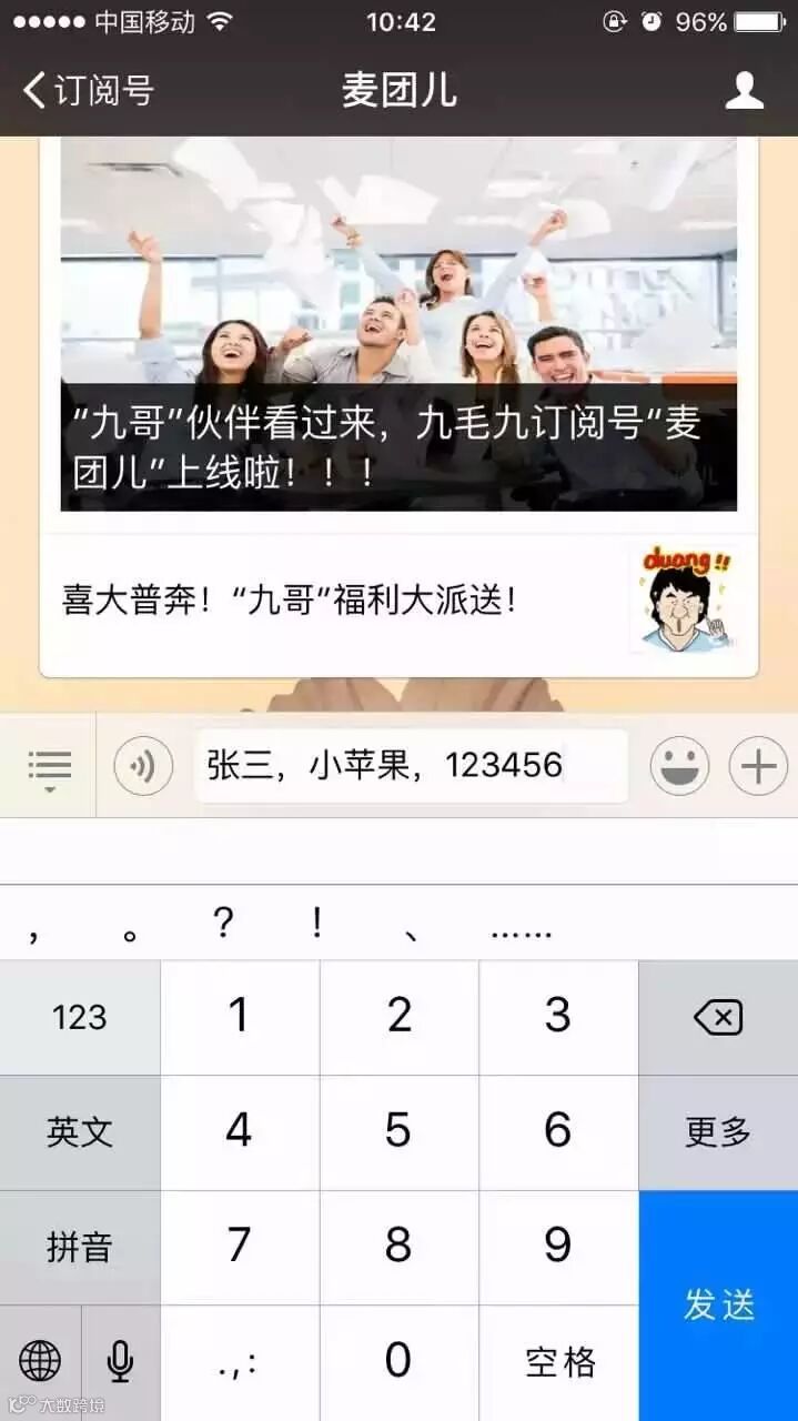 第三步,输入你的姓名+微信昵称+电话号码,发送