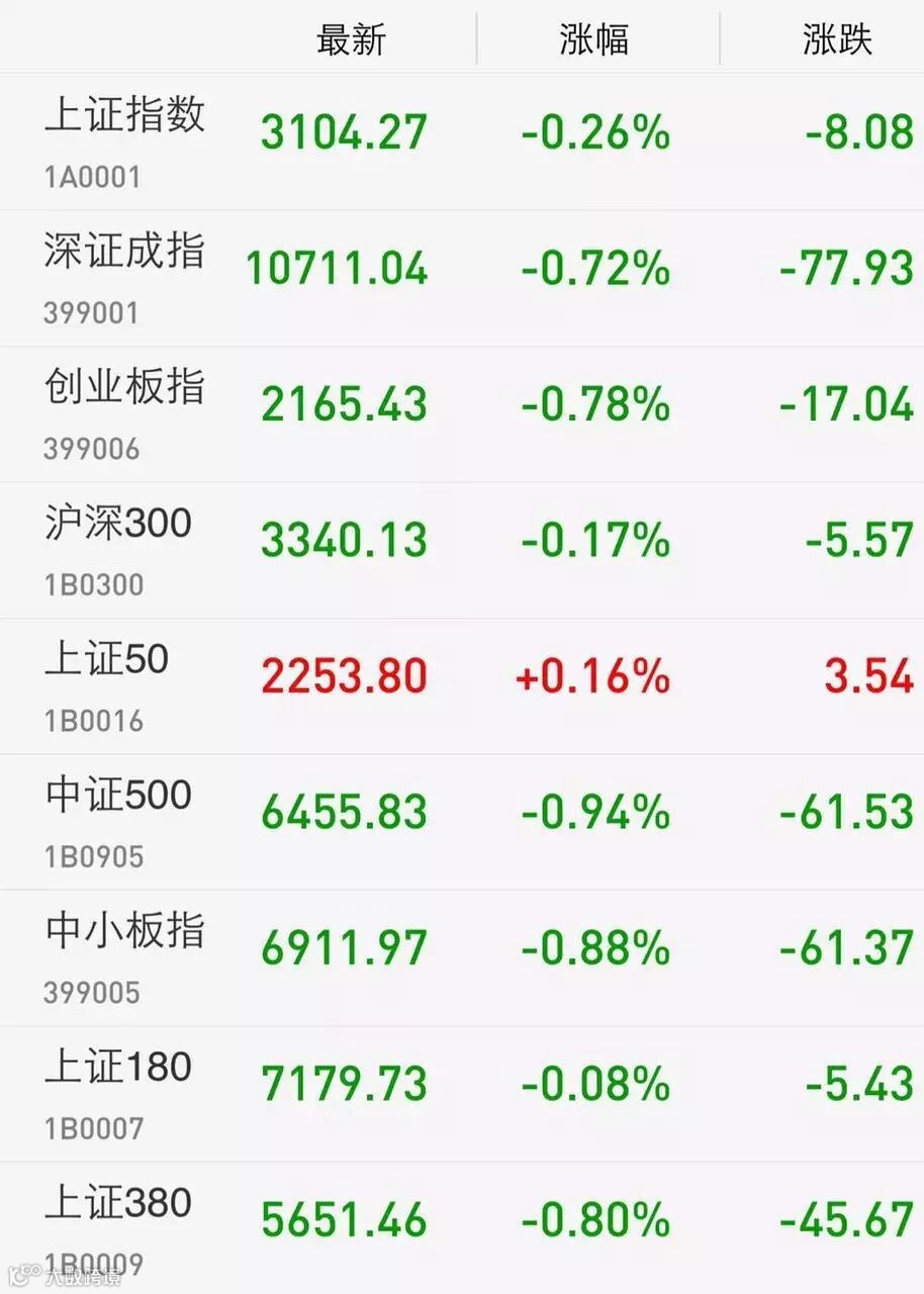 板块普跌,仅次新股、券商、保险、白酒等少数板块上涨,债转股、一带一路等领跌。