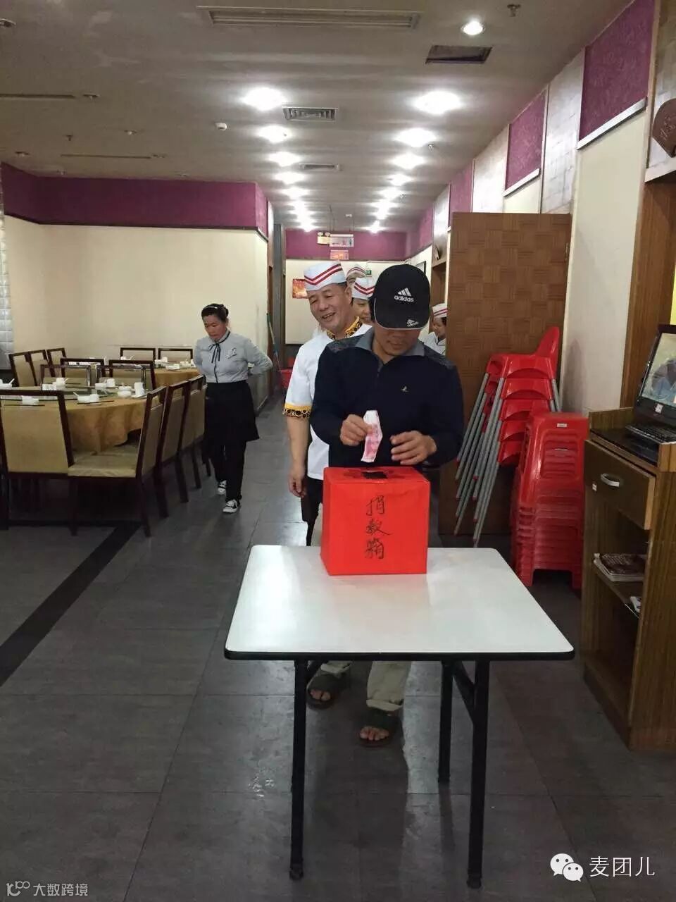 被这份爱心感染到的可不仅仅只有咱九毛九的忠实老顾客,在同一时间里,海甸店那也发生了感人的一幕:刚好送货到店的供货商也义不容辞加入献爱心行列。
