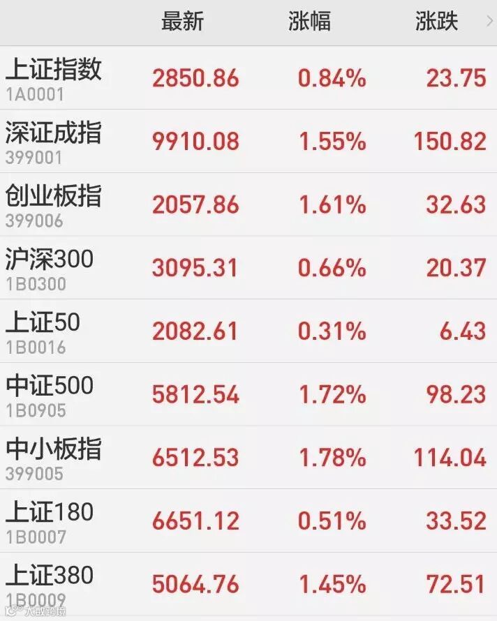 3、美股:美国三大股指收盘普涨。道指冲高回落,最终涨幅1%,报17710.71点;纳指涨1.22%,报4775.46点;标普涨近1%,报2066.06点。