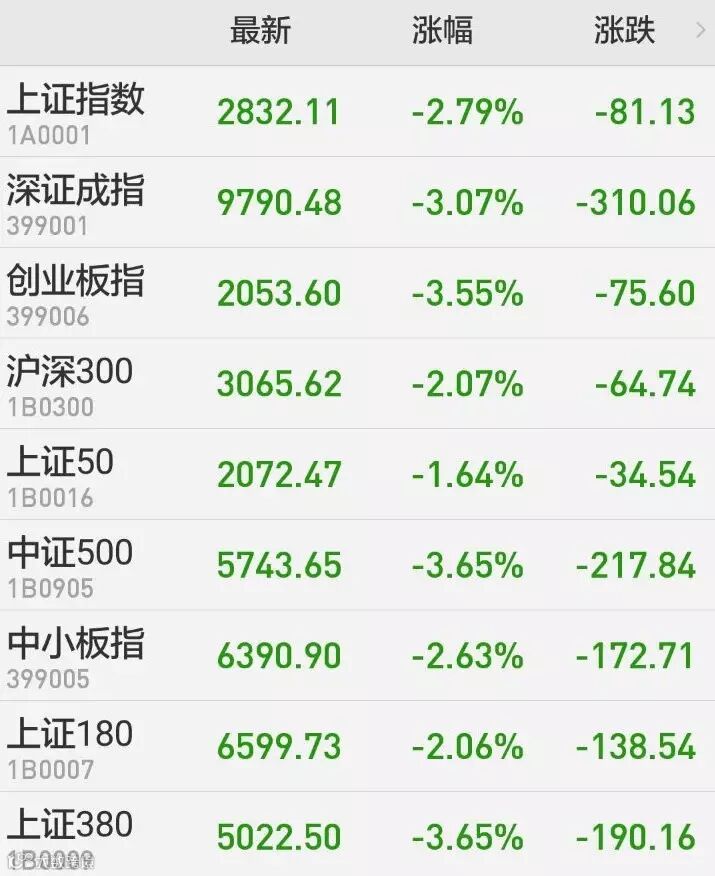 板块全线下挫,白酒、银行、保险等权重跌幅稍小,染料、稀土、网络安全、钢铁煤炭等板块跌幅居前。