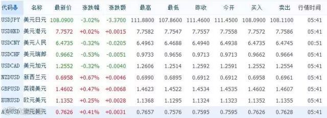 美元指数下跌0.67%,报93.76。欧元兑美元涨0.25%,报1.1352。英镑兑美元涨0.49%,报1.4605。美元兑日元跌3.04%,报108.1020。澳大利亚元兑美元涨0.44%,报0.7628。
