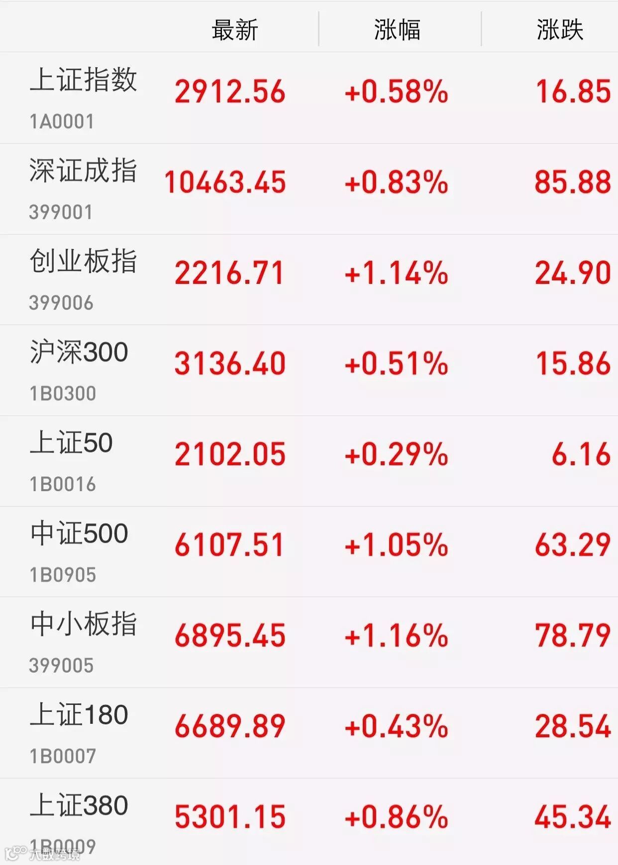 3、美股:美股集体收高,三大股指均创4个月来最大单日涨幅。道指涨1.57%,报17409.72点,标普500涨1.78%报2036.09点,纳指涨2.12%报4691.87点。