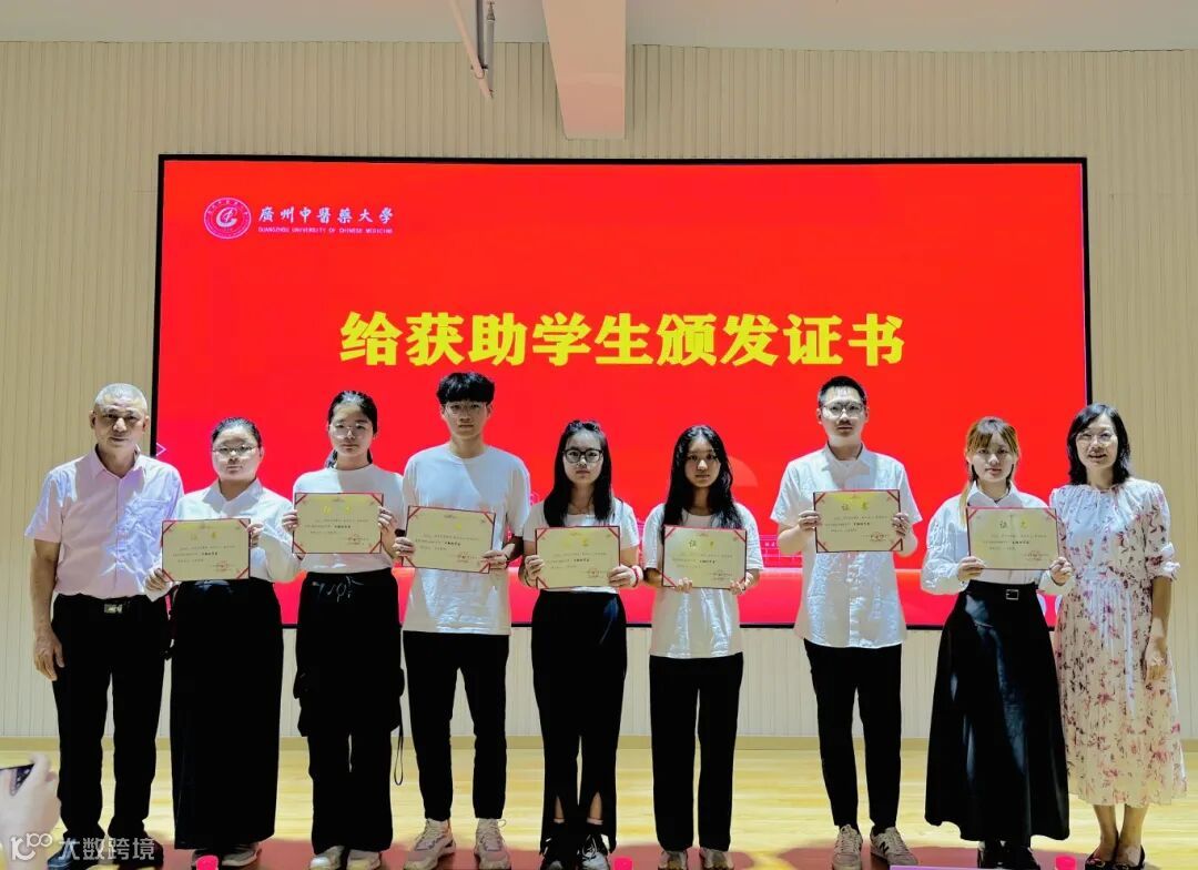 6月20日下午,“大翔助力,梦想腾飞”——助学金颁发仪式在广州中医药大学药科楼B232学术报告厅隆重举行。大翔医药集团有限公司董事长兼总裁陈东平携集团高管出席。广州中医药大学中药学院党委书记张娟、副院长(主持工作)白云龙、学生工作部副部长陆冠儒、中药学院副院长靳红磊、副教授高明,学工办全体辅导员和获助学生全体参加颁发仪式。仪式由中药学院党委副书记王建刚主持。
