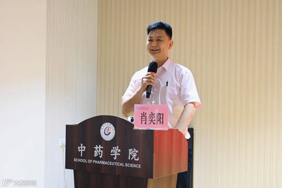 学院91级校友、大翔集团副总裁肖奕阳代表企业讲话。他与同学们分享了回到母校的喜悦,以及与大翔集团共同成长和发展的历程,希望母校在高质量办学中稳步向前,并寄语师弟师妹们谨记校训,志存高远,展现广中医学子的担当。参会人员共同观看了大翔集团的宣传视频,学习了大翔集团“有容乃大、展翅翱翔”的企业文化。