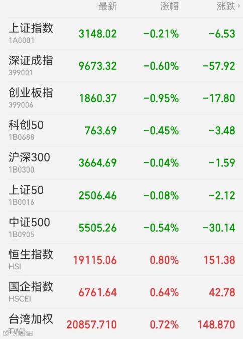 1、A股:A股全天弱势整理,市场没有明显热点,科技股普遍走弱,公用事业板块逆势上涨。上证指数收盘跌0.21%报3148.02点,深证成指跌0.6%,创业板指跌0.95%,科创50指数跌0.45%,万得全A跌0.6%,万得双创跌1.56%。市场成交额9134.9亿元。北向资金周一正式取消成交额实时披露,当日净卖出45.9亿元,中远海控遭净卖出3.69亿元,北方华创获净买入2.86亿元。