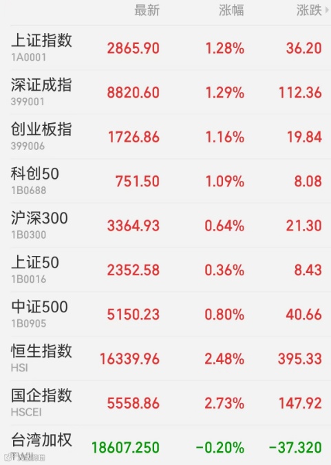 1、A股:A股持续反弹,计算机板块领涨,多股涨停。截至收盘,上证指数上涨1.28%报2865.90点,深证成指涨1.29%,创业板指涨1.16%,北证50涨1.89%,科创50涨1.09%,上证50涨0.36%,深证50涨0.81%,万得全A涨2.37%,万得双创涨4.56%。A股成交额为10252亿元,北向资金净买入5.83亿元,中际旭创获净买入1.53亿元居首;药明康德遭净卖出5.31亿元最多。