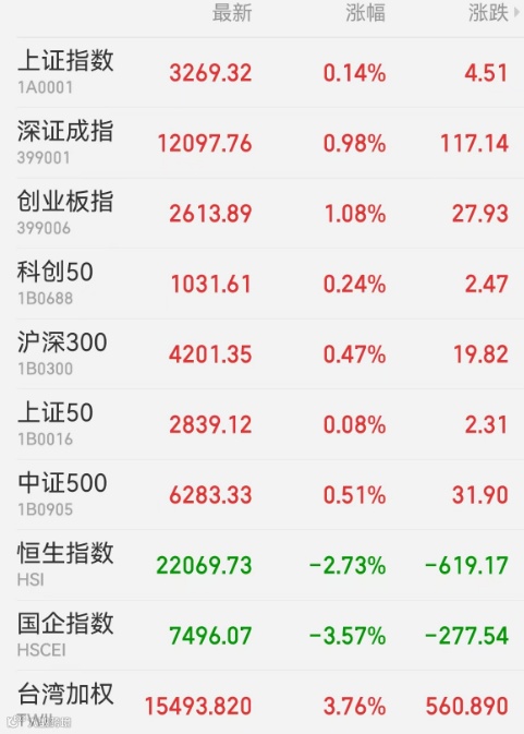 2、港股:香港恒生指数收跌2.73%报22069.73点,恒生科技指数跌4.84%,恒生国企指数跌3.57%。科技、影视、教育、互联网医疗股走弱。碧桂园跌超8%领跌蓝筹,阿里健康跌8%,阿里巴巴跌超7%,腾讯跌6.7%。大市成交放量至2032.48亿港元,南向资金净卖出69.04亿港元,腾讯控股遭净卖出36.87亿港元居首,美团获净买入8.39亿港元最多。台湾加权指数收涨3.76%,报15493.82点。