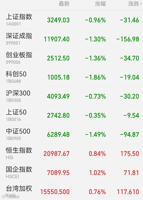 1、A股:A股早盘全线冲高,上证指数突破3300点后乏力跳水,尾盘加速下挫,获利盘蜂拥而出,全天仅有500股上涨。截至收盘,上证指数跌0.96%报3249.03点,深证成指跌1.3%,创业板指跌1.36%,万得全A跌1.39%,万得双创跌2.07%;A股全天放量成交1.19万亿元,创去年双11以来新高。北向资金净买入67.94亿元,中国平安、贵州茅台、宁德时代分别获净买入6.88亿元、6.43亿元、5.54亿元。