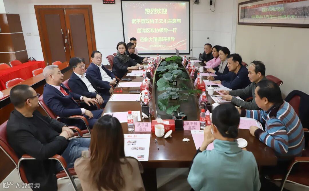 携手合作,共谋发展,开创美好明天。2024年1月10日,福建省龙岩市武平县政协党组书记、主席王云川等领导一行在荔湾区政协党组书记、主席吴辉文的陪同下莅临大翔集团调研指导,共同探讨两域发展可能性。大翔集团董事长陈东平携集团高管接待参观并开展座谈。