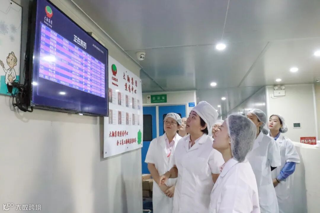 会后,实地参观了大翔集团煎药中心,了解原药材采购·、生产加工、药渣留存、配送物流等相关内容。