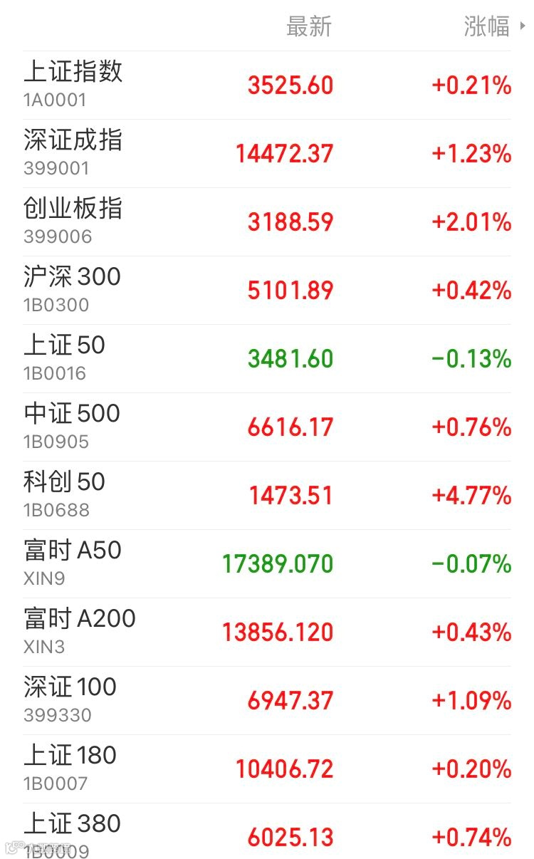 1、A股:周四,上证指数报3525.60点,上涨0.21%,成交额3887.61亿。深证成指报14472.37点,上涨1.23%,成交额5032.11亿。创业板指报3188.59点,上涨2.01%,成交额2208.32亿。两市合计成交8919.72亿。盘面上,第三代半导体、光刻胶、鸿蒙概念等涨幅居前,采掘服务、页岩气、猪肉等跌幅前列。