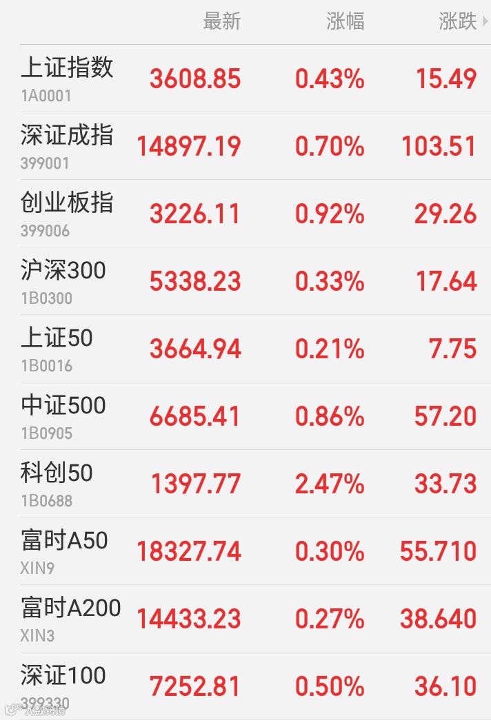 上涨0.43%报3608.85点,