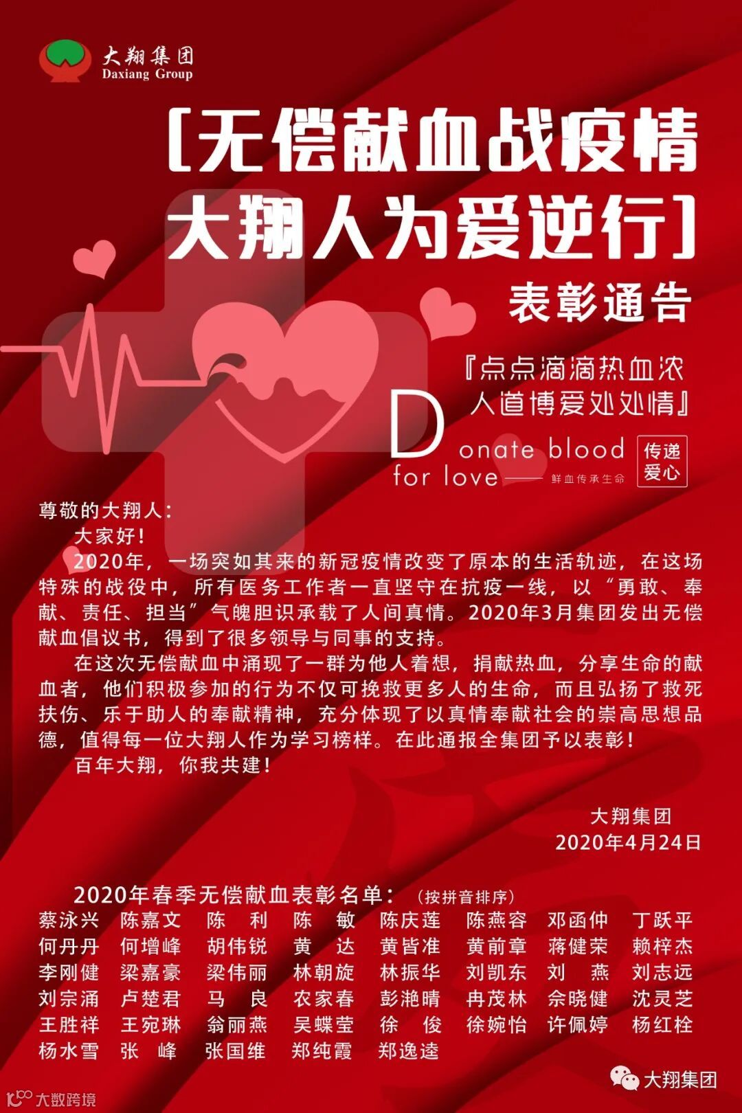 2020年春季无偿献血表彰名单:(按拼音排序)