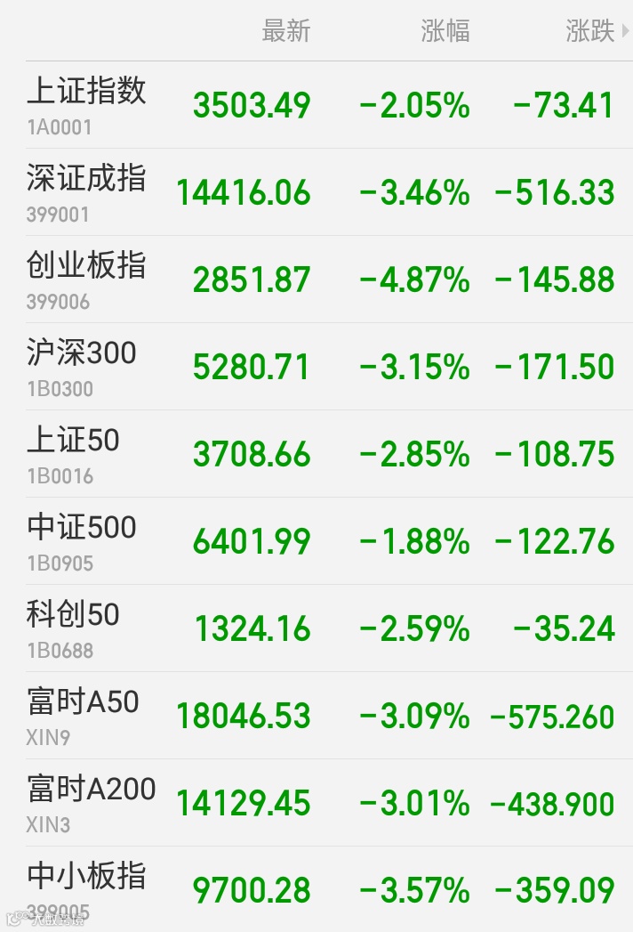 1、A股:上证指数报3503.49点,下跌2.05%,成交额4622.34亿。深证成指报14416.06点,下跌3.46%,成交额5098.06亿。创业板指报2851.87点,下跌4.87%,成交额1766.78亿。两市合计成交9720.39亿。盘面上,采掘服务、钢铁、碳中和等板块涨幅居前,超级品牌、钴、白酒等板块跌幅居前。