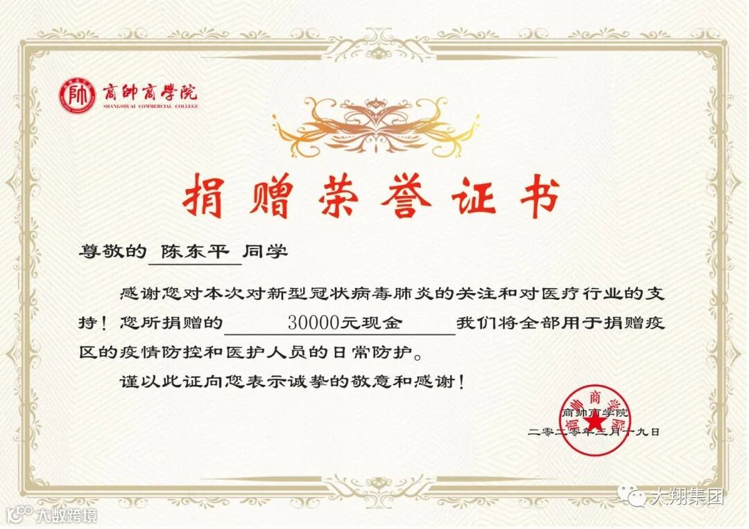在抗疫战斗打响的同时,大翔集团不仅积极努力稳定医药市场的供应,陈东平董事长自身还积极参与、带头捐款,目前大翔集团的捐款已达138万元,捐助各类物资累计价值超过60万元。陈董事长还牵头在医药商会发起慈善募捐,号召广东医药人贡献自己的力量。