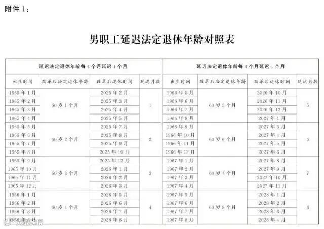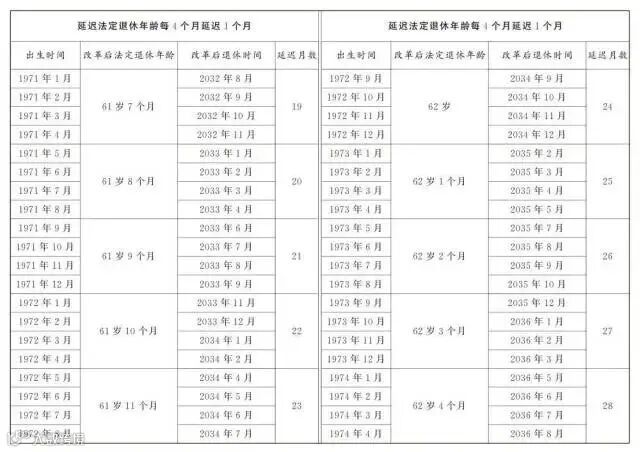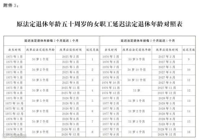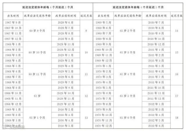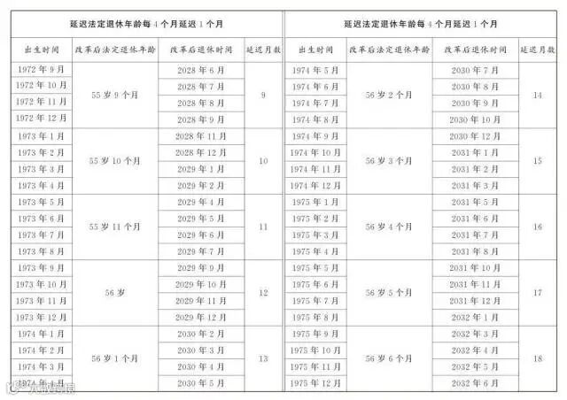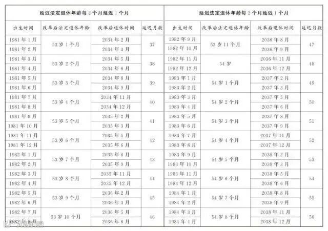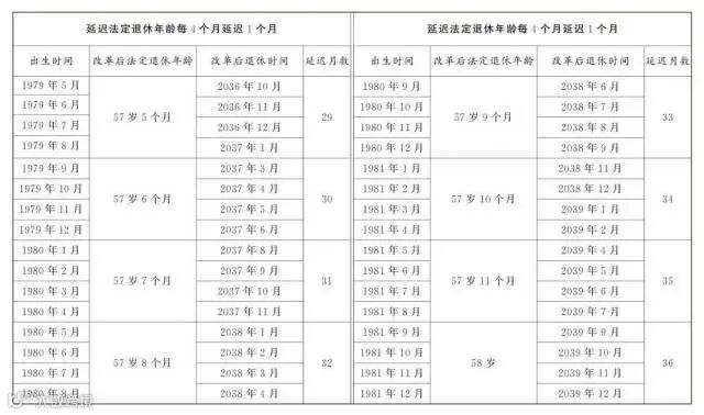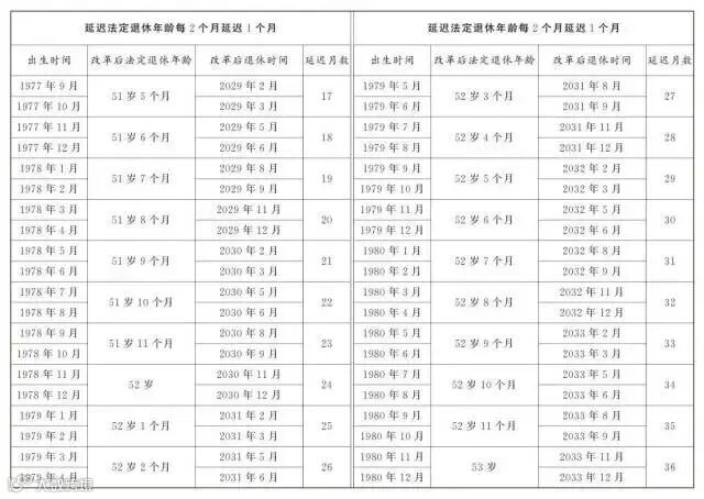 男职工和原法定退休年龄55周岁的女职工,每4个月延迟1个月;原法定退休年龄50周岁的女职工,每2个月延迟1个月。为了让公众更清楚看到自己未来什么时间退休,决定后附了延迟法定退休年龄对照表,可以根据自己的出生年月对照查询。