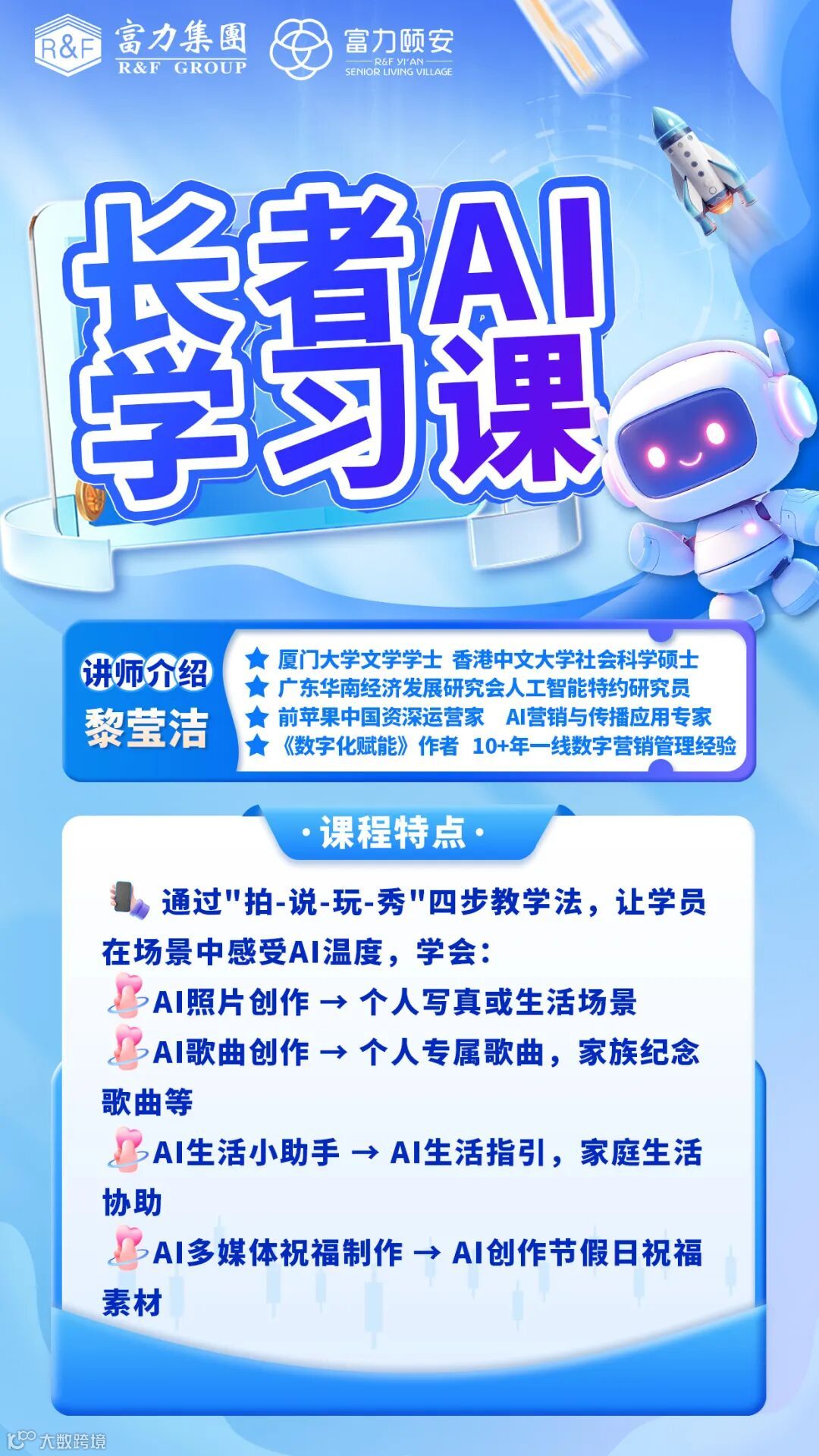 随着AI的热度持续高涨,全民都掀起一股AI学习热。银发一族也不例外, 富力颐安-广州国际颐养社区为了让在住的长辈们, 也紧跟这一浪潮, 让AI成为自己的好帮手,特别邀请了老师给各位长辈上课, 教授他们如果用AI工具帮助自己创作诗歌、画画、查询各种问题......