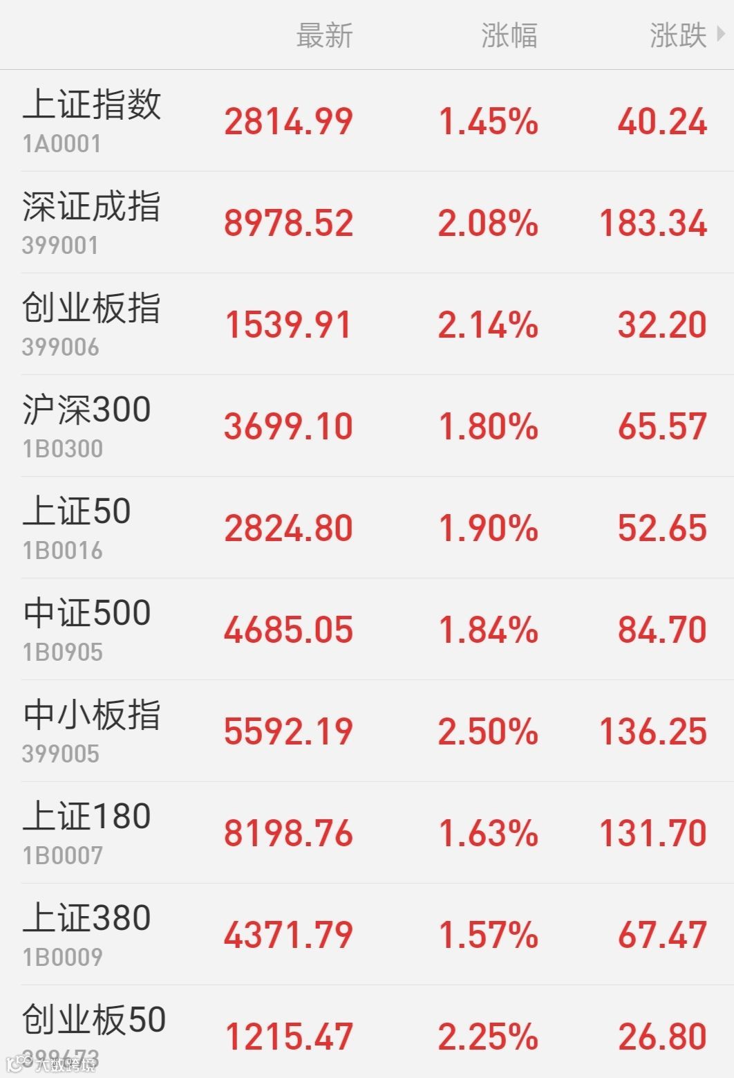 1、A股:沪深两市午后爆发,上证指数收涨1.45%报2814.99点,站上年线;深证成指涨2.08%,创业板指涨2.14%,三大指数均创逾1个月最大涨幅;两市成交3627亿元,量能仍旧萎靡;北向资金净流入22.4亿元,已连续三日净流入。科创板整体较为低迷,微芯生物上市首日高开超500%后横盘,收涨366%,其余个股则多数下跌。行业方面,华为产业链午后全线爆发,PCB板块领衔涨势,其余科技类题材百花齐放。个股方面,华阳国际高台跳水闪崩跌停,振幅近19%,此前连续5日涨停;*ST华信再度跌停,股价报0.74元,已无法在未来4个交易日回到面值,退市或成定局。