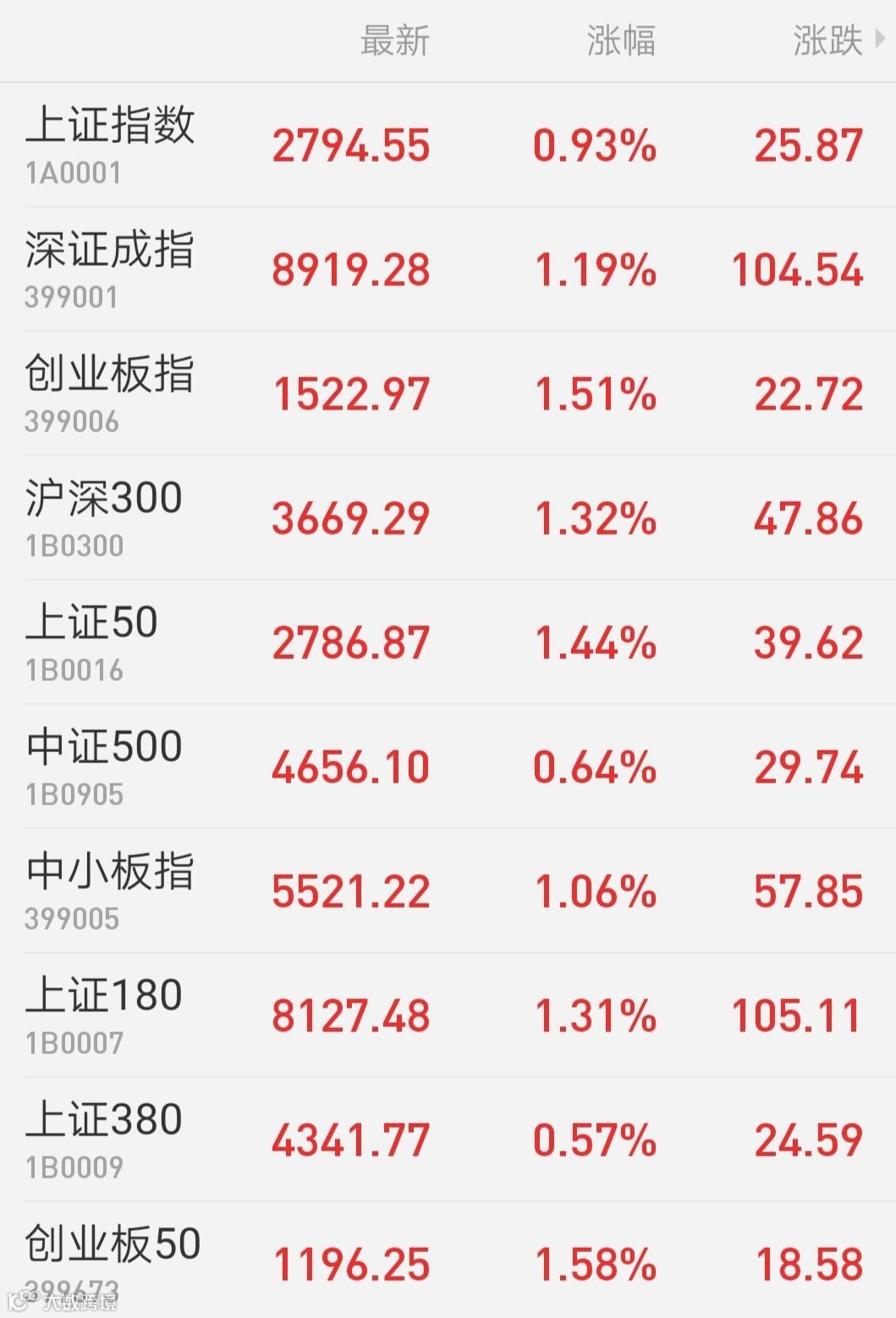 1、A股:上证指数收涨0.93%报2794.55点,终结6连跌;深证成指涨1.19%,创业板指涨1.51%,两市成交3672亿元,北向资金净流入25.49亿元,结束连续6日净流出。科创板两只新股柏楚电子和晶晨股份均收涨逾250%,柏楚电子成板块第一高价股;首批25只个股则集体缩量回撤。