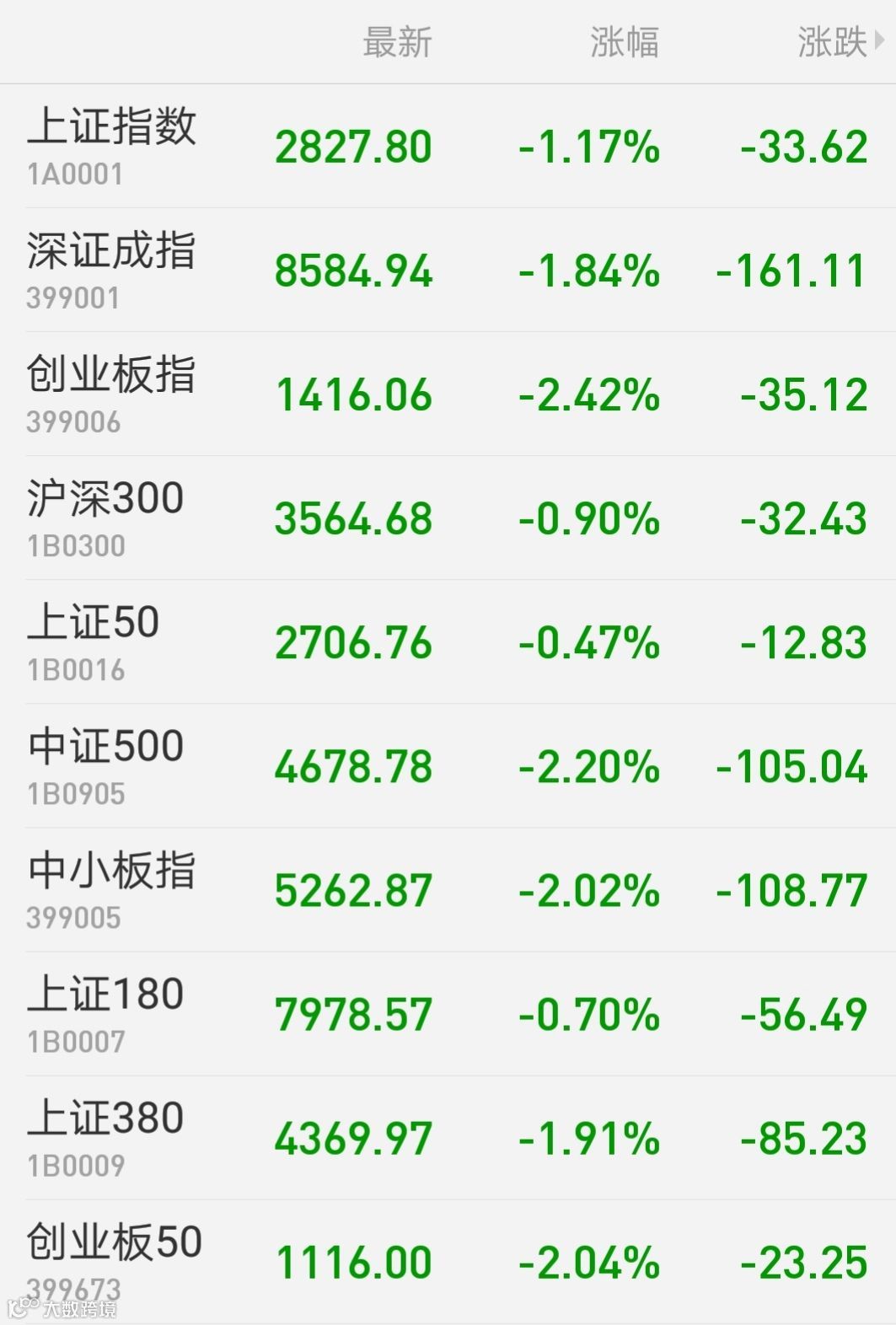 1、A股:A股单边下行,上证综指收盘跌1.17%报2827.8点;深证成指跌1.84%;创业板指跌2.42%;万得全A跌1.59%。节前市场交投清淡,两市成交不足3900亿元,处于阶段低位。北向资金连续4日净流入。稀土永磁板块一枝独秀,