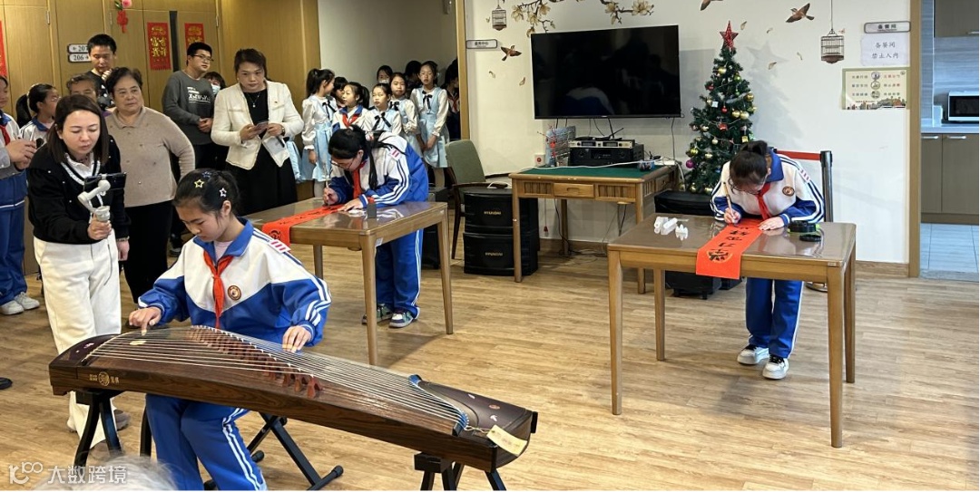 在活动中,孩子们精心准备了二重唱,大合唱,诗朗诵、古筝书法等文艺节目,给爷爷奶奶在富力颐安的生活增添了不少色彩。