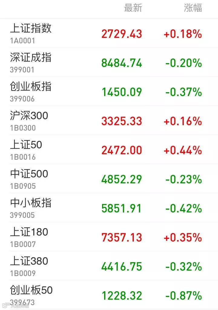 1、A股:上证指数报2729.43点,上涨0.18%,成交额1026.66亿。深证成指报8484.74点,下跌0.2%,成交额1365.18亿。创业板指报1450.09点,下跌0.37%,成交额420.39亿。两市合计成交2391.84亿。从盘面看,银行、旅游酒店等板块涨幅居前。