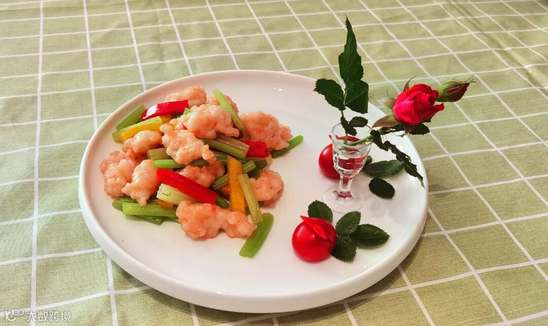 虾肉低脂鲜美,配上颜色鲜艳的彩椒,碧绿清香的香芹,唤起人们食欲。