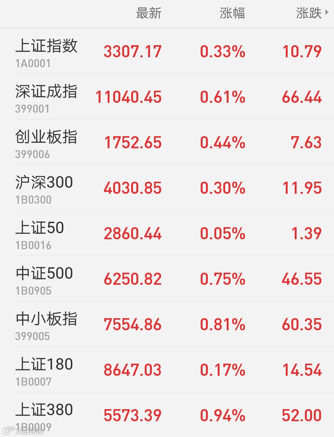 1、A股:上证指数报3307.17点,上涨0.33%,成交额1703.57亿。深证成指报11040.45点,上涨0.61%,成交额1954.71亿。创业板指报1752.65点,上涨0.44%,成交额490.66亿。两市合计成交3658.28亿。从盘面上看,国产芯片、上海自贸等板块涨幅居前。