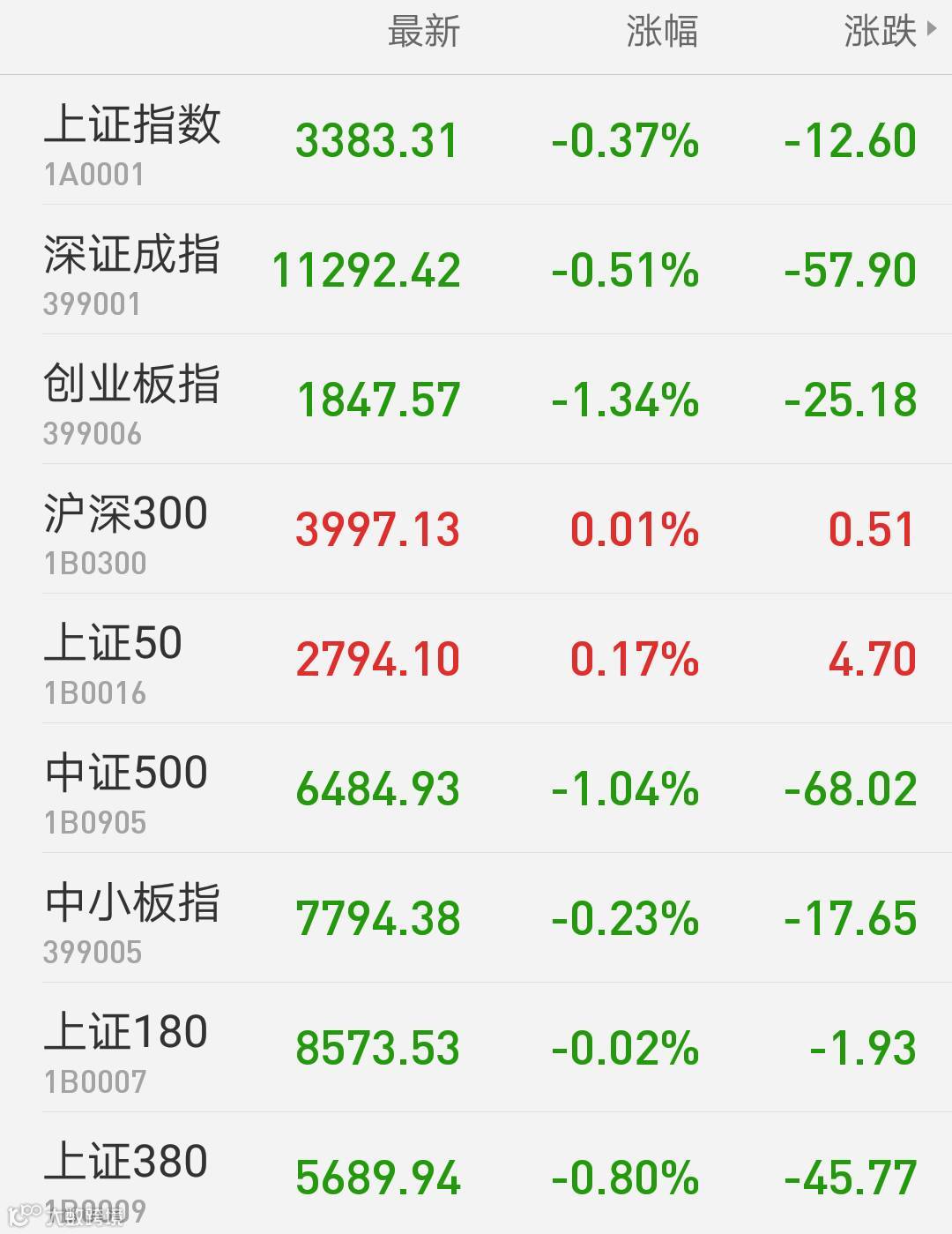 1、A股:上证指数报3383.31点,下跌0.37%,成交额2100.15亿。深证成指报11292.42点,下跌0.51%,成交额2600.87亿。创业板指报1847.57点,下跌1.34%,成交额748.57亿。两市合计成交4701.02亿。从盘面上看,精准医疗、券商等板块涨幅居前。
