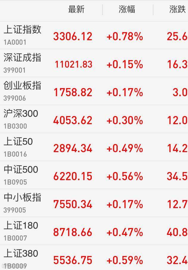 1、A股:上证综指收盘涨0.78%报3306.12点;深成指涨0.15%报11021.83点;创业板指涨0.17%报1758.82点。两市成交3644.91亿元,上日成交3812亿元。次新股强势爆发,天然气板块持续发酵。