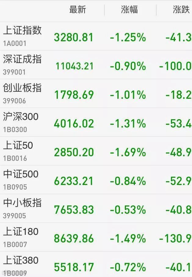 1、A股:A股回吐前一日涨幅,上证综指收盘跌1.25%报3280.81点,失5日均线;上证50跌1.7%;创业板指跌1%失守1800点。两市成交3786亿元,较上日略有缩减。航空股领跌大市,保险股回落明显,煤炭、军工、银行、水泥、钢铁板块均有不同程度下跌。