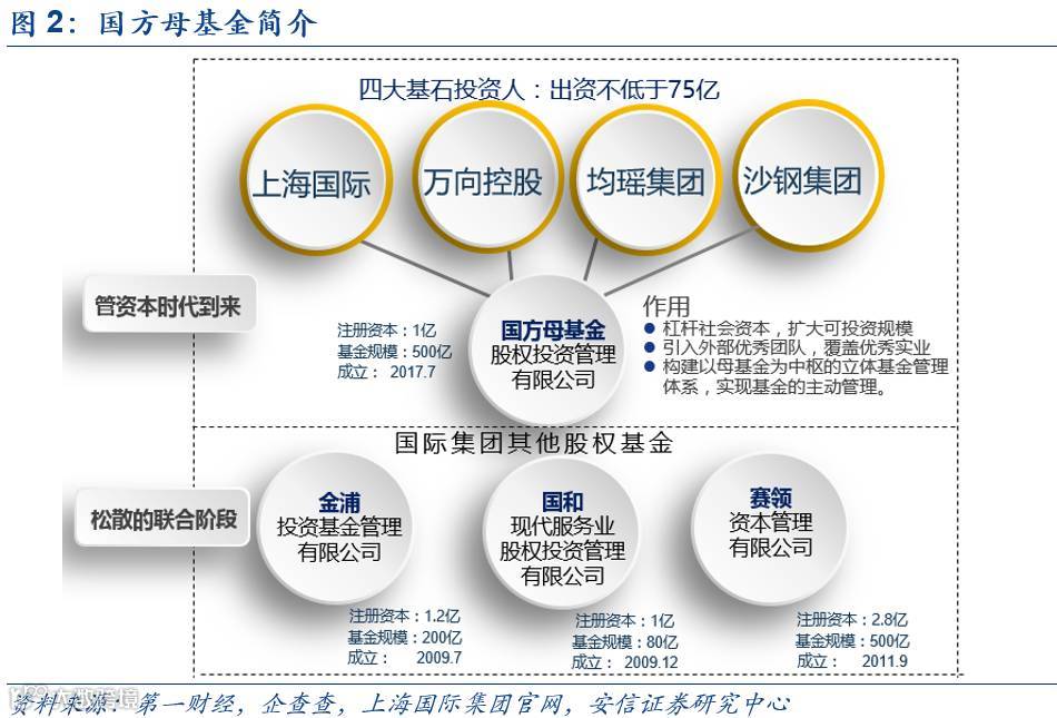 国方母基金系国际集团最新产业基金,距离最近产业基金已逾6年。国方母基金全称上海国方母基金股权投资管理有限公司,是上海国际集团乃至上海国资体系内第一家完全由市场化模式运营的母基金管理公司。除该基金外,国际集团自2009年已经陆续打造以“金浦”、“国和”、“赛领”为核心的产业基金群,合计基金管理规模超过400亿元。自2011年赛领成立后,国际集团再无成立其他产业基金,国方母基金的建立标志上海管资本的国改思路的明确和国改路线的细化落实,上海国改在下半年会有更多实质性突破。这也预示了我们在2月22日报告中所提及的,2017年将是上海国改不平凡的一年。