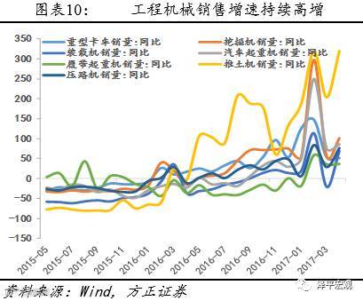 机械市场销售持续旺盛。据第一商用车网报道,5月我国重卡销售约9.3万辆,环比4月下降11%,同比增长43%,上月同比微52%。由于物流车需求逐渐趋缓,重卡销售同比出现下滑,但工程车的销量仍较好。