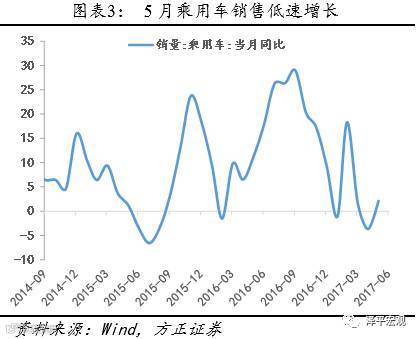 全国乘用车市场数据显示,5月狭义乘用车产量171.0万台,同比1.3%,销量174.1万台,环比4月增长4.8%,同比增长2.1%。由此推动1-5月的零售同比终于恢复0.2%的微幅正增长,但增长压力较大。6月天气转热和进入考试季,乘用车市场也进入下行期。今年6月有22个工作日,同比和环比都多一个,有利于销量走稳。但去年6月车市开始超预期增长,未来几个月车市增长的基数压力持续增大。