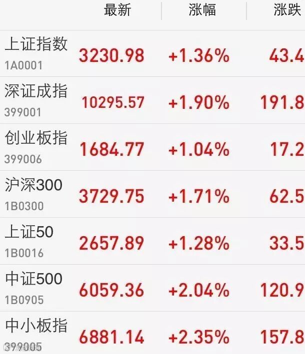 1、A股:上证综指收盘放量升逾1.36%报3230.98点,轻松收复10日均线并创3个月新高;深成指大涨近2%报10295.57点;创业板指涨1.04%报1684.77点。两市成交5236亿元,上日为4124亿元。煤炭、钢铁、有色、券商板块领涨。