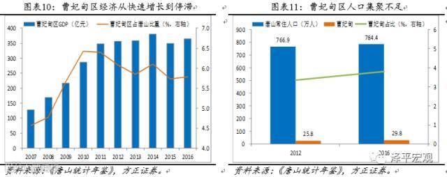 开发建设14年来,先后有70多位党和国家领导人前来曹妃甸视察,从2005年国家发改委批准首钢搬迁,到2006年被写入国家“十一五”发展规划,到2008年经河北省获批为新区,到2012年经国务院批准设立唐山曹妃甸区,到先后获批为国家首批循环经济试点产业园区、国家级经济技术开发区、国家级石化产业基地、中日韩循环经济示范基地、综合保税区和国家智慧城市试点等,获得了较大力度的政策支持,累计投资超过5000亿。曹妃甸高峰时期号称日均投资4亿元,一度被称为“中国最大的单体工地”,与天津滨海新区相互竞逐,共同构成中国区域开发中最受瞩目的双子星座。2007-2011年,曹妃甸GDP从127亿元快速增至348亿元。但是,在4万亿投资之后的2012年左右,曹妃甸发展逐渐进入瓶颈,逐渐被媒体爆出烂尾以及陷入千亿级债务困境。2012-2016年,曹妃甸GDP从356亿元波动变至365亿元,当前不到唐山的6%,不到当前“白纸”雄安新区的2倍;常住人口从2012年的26万增至30万,当前不到唐山的4%。