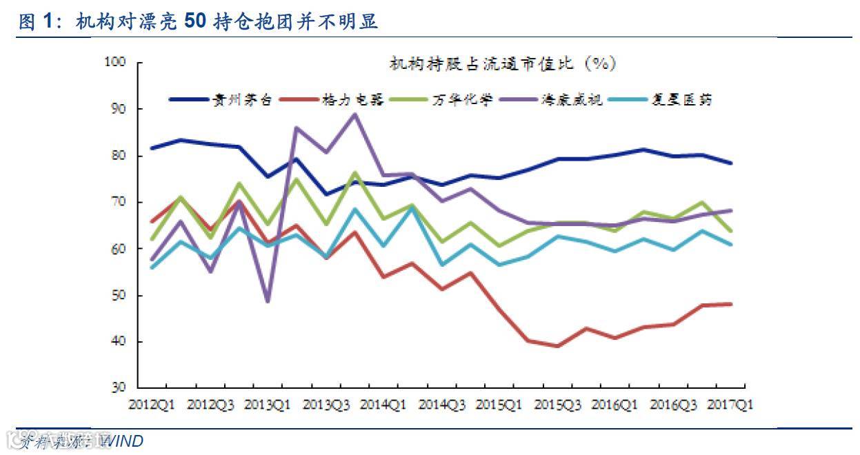 但我们认为不应该简单将“中国版漂亮50”定义为机构抱团品种。实际上贵州茅台、格力电器、海康威视、万华化学和复星医药等公司,从公募持仓数据变动中可以清楚地发现,这些品种并未出现近期机构持仓集体提升的趋势,甚至是更多出现下降迹象。
