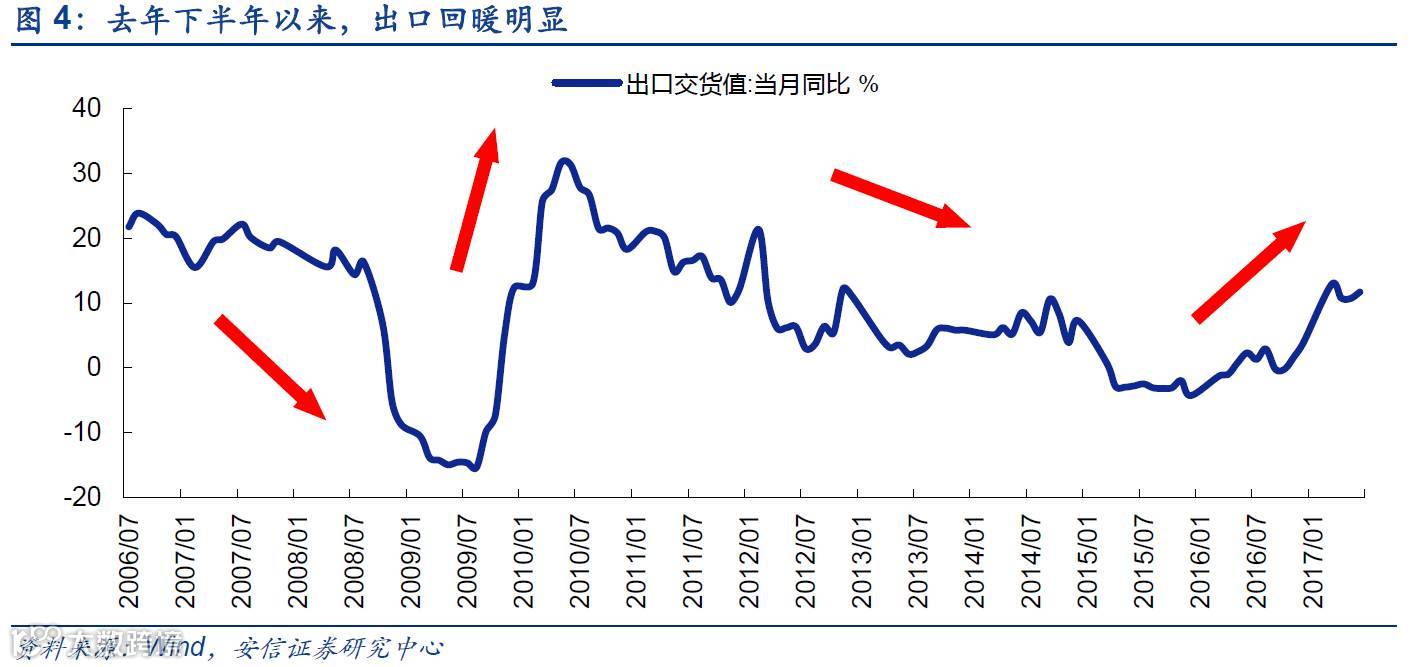 我们对中国经济中期趋势表示乐观,一方面,去年下半年以来,随着全球经济复苏和需求向好,我国出口回暖明显,为经济提供了新动能。出口交货值数据为此提供验证:6月出口交货值同比11.7%,较5月反弹了1个百分点;2季度同比11.1%,较1季度反弹了0.8个百分点。