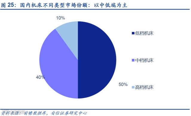 数控机床主要分为经济型、普及型和高档型三种。其中经济型机床采用开环控制技术;普及型机床采用半闭环控制技术;高档型机床采用闭环控制,分辨率高,可达到0.1微米。目前60%-70%的数控系统主要由国外提供,我国的数控机床主要集中在中低端领域,即以经济型和普及型机床为主。