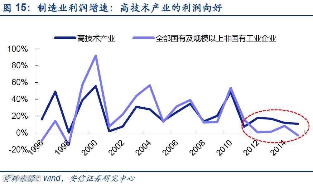 回顾以往的发展,我国工业利润的历史数据也反映了技术的重要性。近年来在我国工业整体利润增速下降的同时,高技术制造业的利润仍保持不错的增长速度。