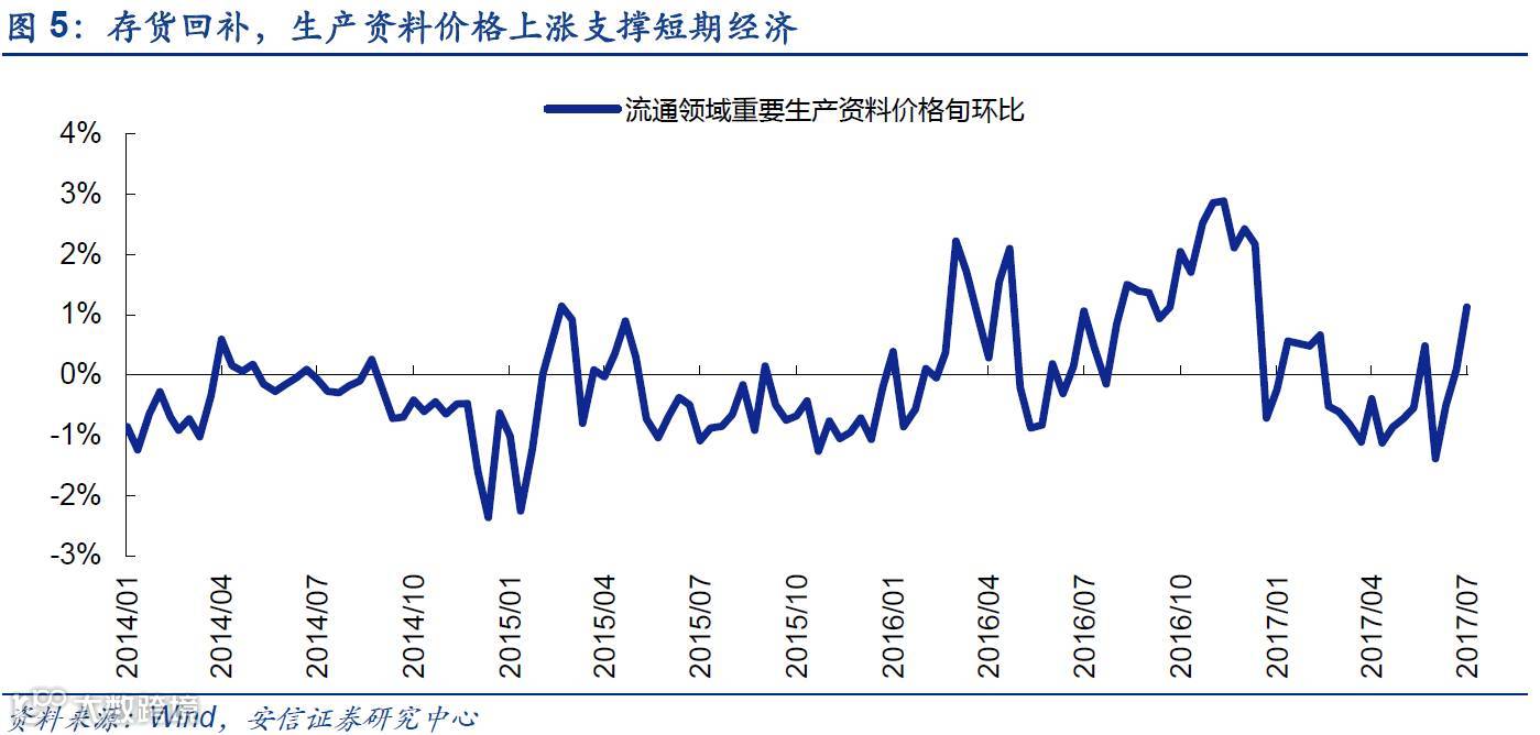 另一方面,从短期来看:6月以来流通环节的存货回补,同样对生产活动提供了支撑。表现在价格方面可以看到,6月以来,生产资料价格环比跌幅收窄,并在7月上旬录得正增长。