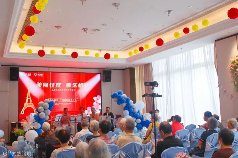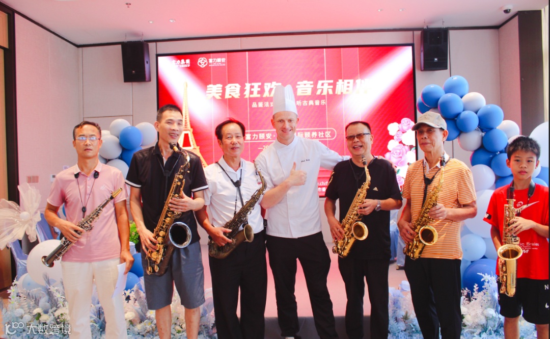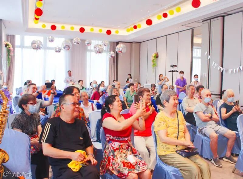 还没到10点, 在住老人们已迫不及待地来到了多功能厅。今天的活动除了有浪漫法餐体验,社区还邀请了“四海乐团”共6位萨克斯乐手来到现场为长者朋友们演奏。