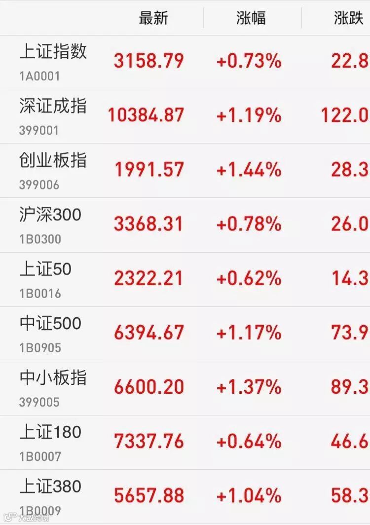 板块全线上扬,白酒、高送转、锂电池、化工等涨幅居前,银行、保险涨幅稍窄。