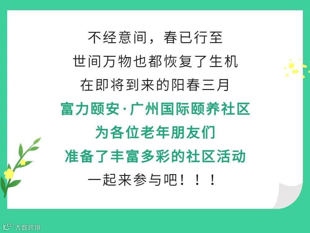 活动预告丨和煦春风送来了富力颐安·广州国际颐养社区3月活动预告,请查收~