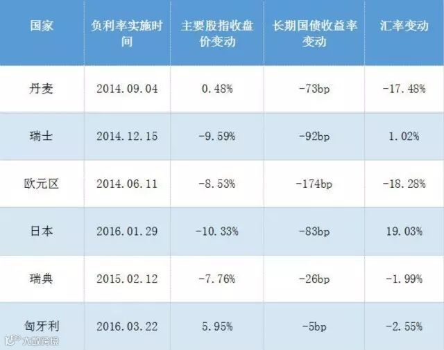 3、实施负利率国家的股市与债市逐步产生分化,很多国家国债收益率已降至历史最低点;其股票市场出现不同幅度调整,由此说明,负利率下投资者对于经济与金融前景的担忧已经超过了流动性充裕带来的投机冲动。