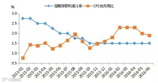 中国还没有进入名义负利率阶段,但实际利率自2015年11月就已经降至零以下。当前一年期存款利率1.5%,通胀自去年11月起持续高于存款利率,意味着我们已经进入了实际负利率时代。