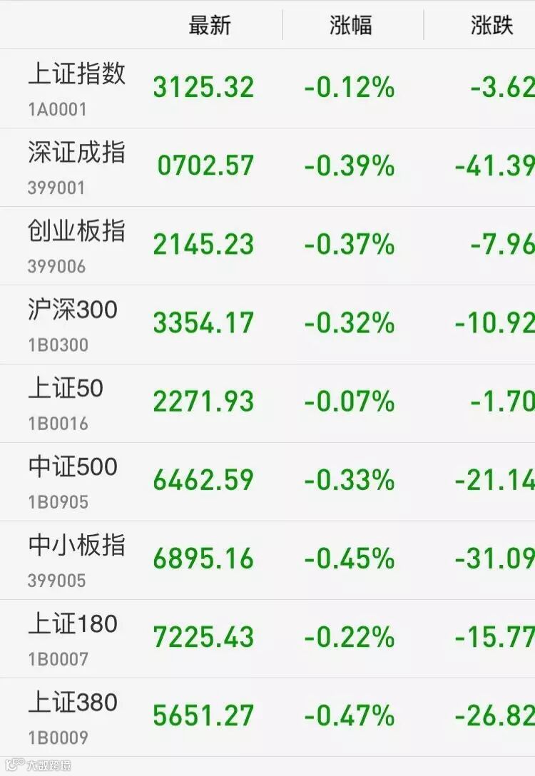 3、美股:美国三大股指集体下跌,上周亦全部收低。道琼斯工业平均指数收跌0.24%,报17888.28点,上周累跌1.5%。标普500指数收跌0.17%,报2085.18点,连续9个交易日下跌,创1980年以来的最长连跌纪录,上周累跌1.9%。纳斯达克综合指数收跌0.24%,报5046.37点,上周累跌2.8%。