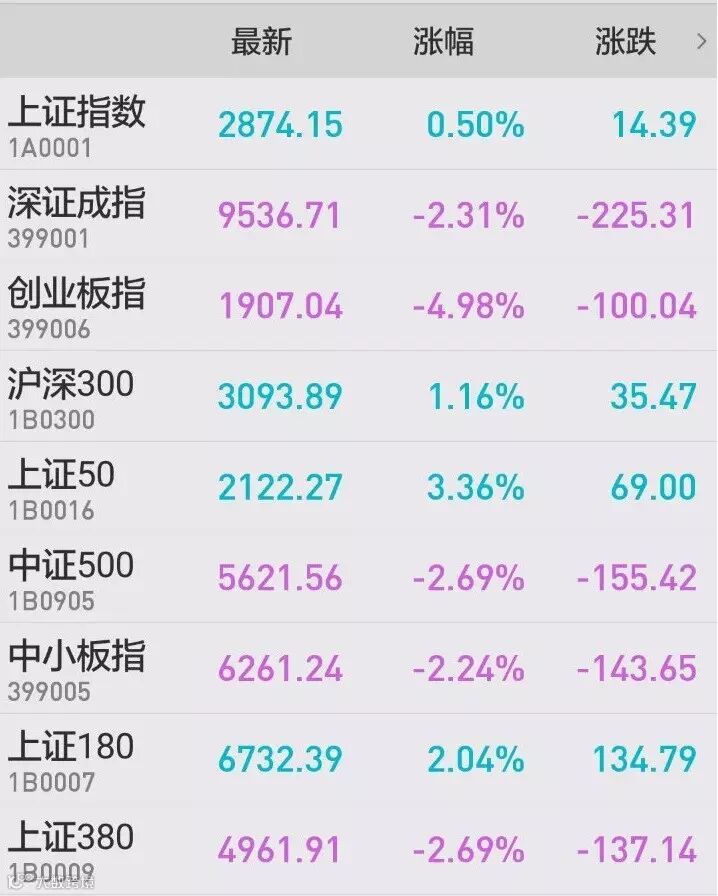 1、A股:周五上证指数收报2874.06点,上涨0.5%,成交额2949.8亿元。深成指收报9536.71点,下跌2.31%,成交额3456.6亿元。创业板指收报1907.04点,下跌4.98%,成交额801.5亿元。银行、有色、酿酒等板块涨幅居前。网络安全、在线教育、国产软件、虚拟现实等板块跌幅居前。