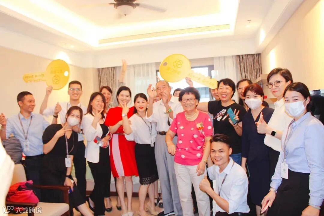 吃完午饭后,13名长辈及家属陆续到达社区启动仪式活动现场,现场旗帜纷飞,国旗飘扬,工作人员排成两个纵队,用热烈的掌声隆重欢迎进入大厅的长辈们,一声声“欢迎回家”让长辈们开心不已。